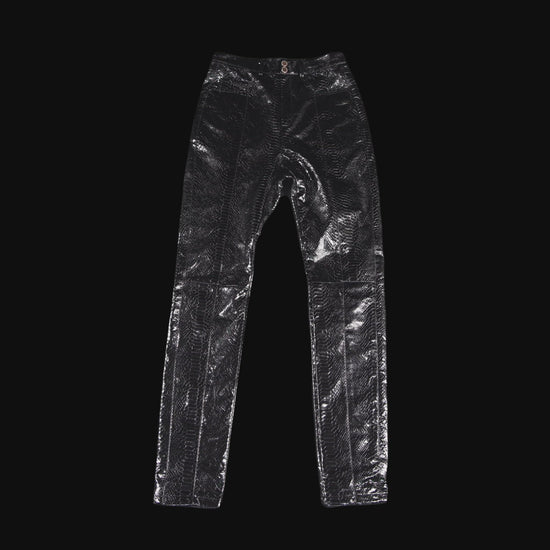 Designed By Luchione, designed Lex talio capsule with pure soft sheepskin. Sheepskin leather is embossed with fine python print. Finished with metallic film coating. This Luchione piece is lined with mulberry satin. Tailored fit.