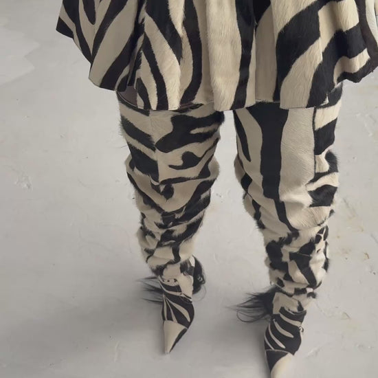 Unveil the allure of the ZECABRA Pleated Skirt, tailored from rare zebra-hide leather. No two are alike, ensuring true exclusivity. Luxuriously lined in leather for a flawless drape and indulgent feel.